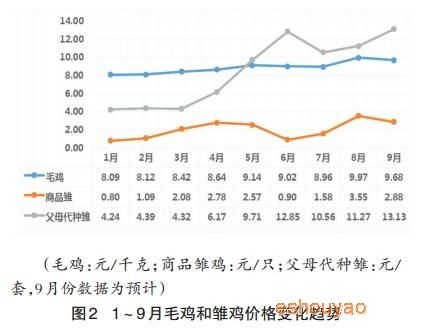 1~9月份商品雏平均售价2.03元/只,与2.4元/只的行业平均成本相比,总体还是稍有亏损,当然部分成本控制较好的企业,或在3月下旬至5月下旬和8月以来产量处于高峰时期的企业,还是会有较好的利润。